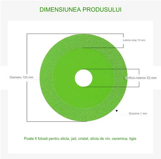 Disc diamantat pentru flex, de taiat sticla si cristal,125 latime nisip 15