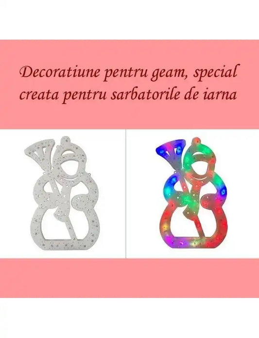 Decoratiune Craciun , Ornament Pentru Geam, Om De Zapada, Cu Luminite Multicolore