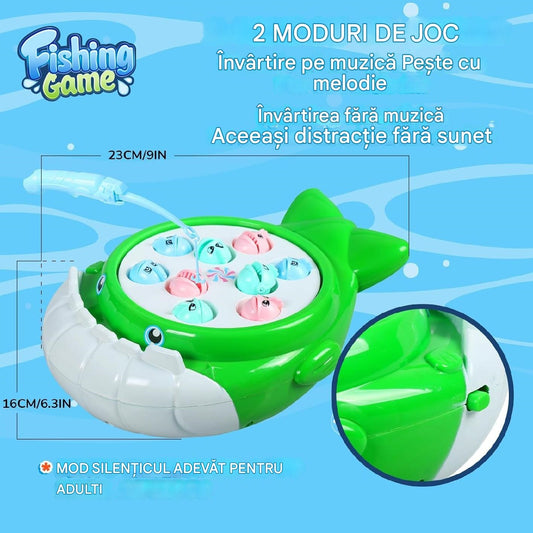 Joc de pescuit pentru copii - 2 culori Jucării electrice de pescuit Jocuri educaționale cu jucărie muzicală de pescuit rotativă Include 9 pești și 2 lansete pentru băieți și fete (verde)
