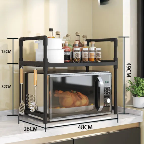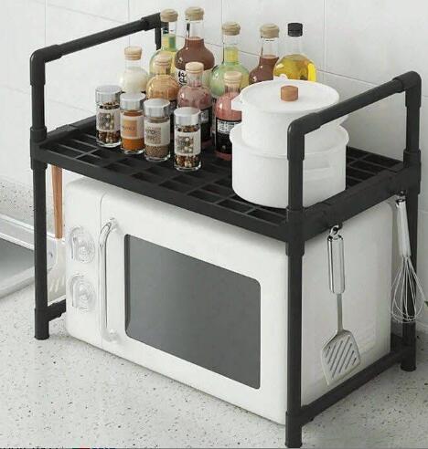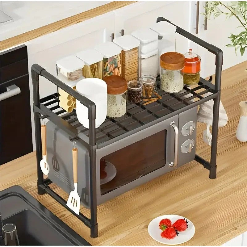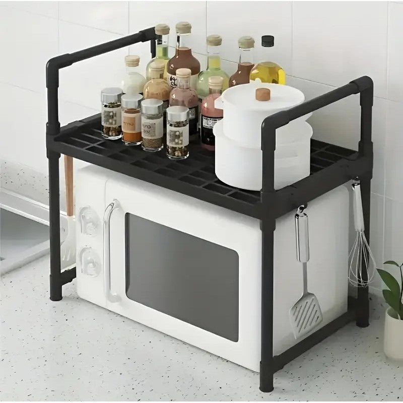 Optimizează spațiul și păstrează ordinea în bucătărie cu acest raft practic pentru microunde, conceput pentru a combina funcționalitatea cu designul elegant.